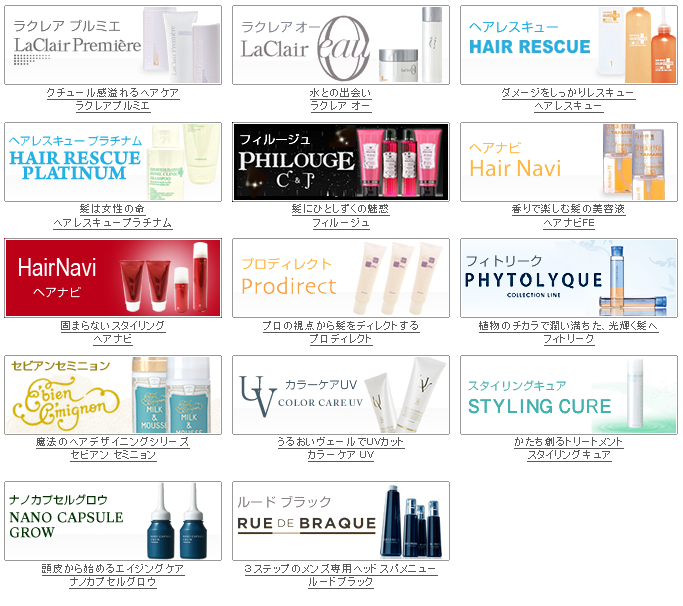 次のような、美容室専売品、サロンヘアケア(シャンプー・トリートメント・育毛剤)商品を格安で販売しています!
